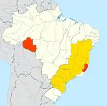 По состоянию на 1998 год кофейные плантации занимали 27 000 км², на них росло 6 млрд кофейных деревьев, 74 % — арабика и 26 % робуста[24]. Более 56 % плантаций имеет площадь от 10 до 50 га, 28 % — свыше 50 га[23]. Основные плантации расположены в штатах Сан-Паулу, Минас-Жерайс и Парана. Сбор кофе ведётся в сухой сезон с июня по сентябрь[25]. В производстве кофе занято около 3,5 млн человек. Сильный ущерб индустрии нанесли заморозки 1975 (пострадали ½ всех посадок[26]) и 1994 г, а также засуха 2001 года, что привело к росту цен на мировом рынке[27].