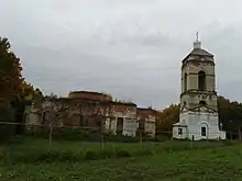 | Частично восстановленная колокольня и руины храма Михаила Архангела в селе Проказна (XIX век) | Руины храма Михаила Архангела в селе Проказна (XIX век) | Руины храма Михаила Архангела в селе Проказна (XIX век) |