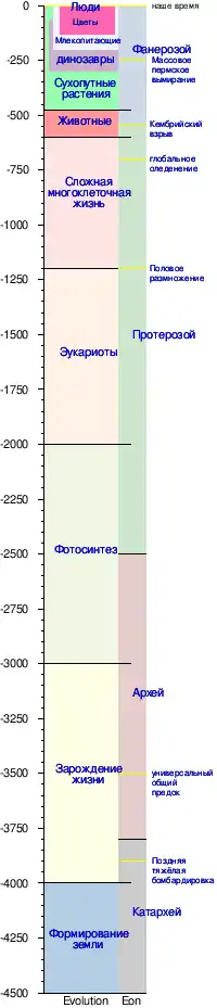 Самые древние из известных окаменелых прокариот были заложены примерно 3,5 миллиарда лет назад, всего лишь около 1 миллиарда лет после образования земной коры. Эукариоты появляются только в окаменелостях позже и могут образоваться в результате эндосимбиоза нескольких предков прокариот. Самым древним известным ископаемым эукариотам около 1,7 миллиарда лет. Однако некоторые генетические данные свидетельствуют о том, что эукариоты появились еще 3 миллиарда лет назад.