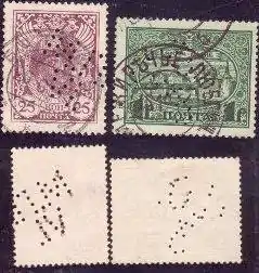 | 2 | 104, 105 | 1923 | Гашение проколом | «1923/24. Октябрь—январь. Марки оригинальных рисунков. Марки № 18 и 19 встречаются с неофициальными проколами»[12]. | |||