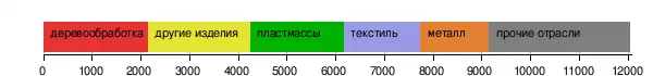 - Производство изделий из дерева и бумаги, полиграфическая промышленность — доля 3,9 %, 2156 предприятий, занято 58,1 тыс. сотрудников (6,5 %);