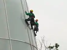 - В случае работы на очень большой высоте (телевышки, ветряные мельницы) или над водой (мосты, плотины, виадуки) промышленный альпинизм является единственным возможным вариантом для проведения покрасочных и реставрационных работ