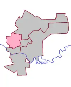 В южном направлении по руслу реки Сакмара до слияния с рекой Урал, вдоль северной границы садовых участков «Прогресс» и Городской станции аэрации, пересекая железнодорожные пути, до пересечения с улицами Виноградной и Садовников. В северо-восточном направлении, вдоль частного сектора по нечетной стороне улице Виноградной до пересечения с улицей Садовников. В юго-восточном направлении по частному сектору улицу Садовников до пересечения с Кустарным переулком, на северо-восток по нечетной стороне частного сектора до пересечения с проездом Коммунаров.