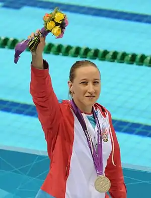 ![]() Натали Пронина на церемонии награждения Паралимпийских игр 2012 | |