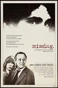 «Пропавший без вести» (англ. Missing) — кинофильм режиссёра Коста-Гавраса, вышедший на экраны в 1982 году. В основу фильма легла подлинная история Чарлза Хормана, молодого журналиста из США, исчезнувшего в Чили после кровавого переворота и погибшего от рук чилийских военных 19 сентября 1973, когда к власти пришёл диктатор Аугусто Пиночет. (Фильм был запрещён во времена военной диктатуры, хотя сам Пиночет там не упоминается, вместо адмирала Мерино звучит имя вымышленное имя адмирала Худобре, Чили также, но звучат названия городов Сантьяго и Винья-дель-Мар, на военном вертолёте отчётливо видны опознавательные знаки ВВС Чили. Не оставляет сомнений и датировка событий в записях Хормана сентябрём — явно 1973 г.)