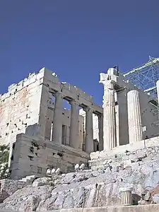 - Greeks finish Propylaea restoration on Acropolis (недоступная ссылка). Дата обращения: 25 февраля 2012. Архивировано 24 декабря 2009 года.