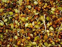 Среди других культур, используемых для проращивания: кунжут, соевые бобы, пшеница, подсолнечник, люцерна, миндаль, амарант, ячмень, гречиха, нут, кресс, пажитник, лён, горох, тыква, кинва, рожь.[2]