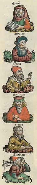- 12 Малых пророков: Иоиль, Иона, Амос, Осия, Михей, Наум, Софония, Аввакум, Авдий, Аггей, Захария, Малахия.