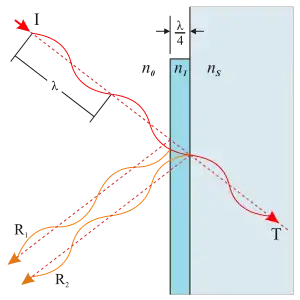 Основная идея интерференционного просветления — достичь сложения в противофазе отражённых волн от двух поверхностей раздела.