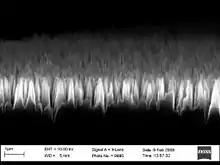 Такая поверхность оптически ведёт себя как поверхность покрытая слоем материала с градиентом показателя преломления — так называемая эффективная оптическая среда. Коэффициент отражения от такой поверхности очень мало зависит от длины волны излучения и угла падения и близок к нулю.