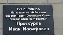 - В Запорожье на фасаде проходной Кабельного завода, где работал И. И. Проскуров, установлена мемориальная доска (на тот момент — завод им. Ф. Энгельса).