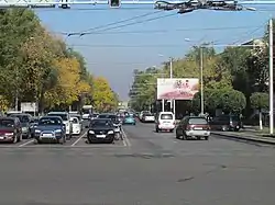 ![]() Вид в направлении с юга на север с перекрестка улиц Алтынсарина-Джандосова. Октябрь 2014 | |