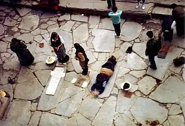 Совершение простираний в Бодхгайе — месте, в котором исторический Будда Шакьямуни обрёл просветление, является целью паломничества буддистов различных школ и конфессий уже многие века. По традиции они стремятся совершить в этом месте сто тысяч простираний.