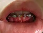| Герпетический гингивостоматит | Герпетический гингивостоматит часто появляется после первичного заражения. В дальнейшем герпес чаще рецидивирует в более легкой лабиальной форме. | ![]() |