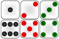 - — грань с шестью точками.