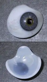 - В декабре 2006 г. археологи обнаружили в Шахри-Сухте древнейший протез глазного яблока,[22] полусферической формы, диаметром чуть более 2,5 см. Он выполнен из очень лёгкого материала, предположительно битумной пасты. Поверхность искусственного глаза покрыта тонким слоем золота, в центре его выгравирована окружность (изображающая радужку глаза) с золотыми линиями, расходящимися в виде лучей. Женские останки, рядом с которыми обнаружен искусственный глаз, имели рост 1,82 м — намного выше, чем для средней женщины того времени. С обеих сторон в искусственном глазу были просверлены тонкие отверстия, через которые продевалась золотая проволока, при помощи которой глаз закреплялся в глазнице. Микроскопические исследования обнаружили следы золотой проволоки, что говорит о том, что искусственный глаз постоянно использовался. Скелет датируется периодом около 2900—2800 гг. до н. э.[23]