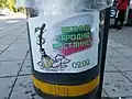 Трехцветный баннер с требованием отставки правительства. Баннер такой же, но значительно меньшего размера, чем тот, который были вывешены митингующими у памятника Шипка.