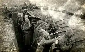Также для химических атак стали использовать вещества в виде аэрозолей - мелкодисперсной пыли и тумана. Маленькие частицы проходили между крупными кусками активированного угля (4-11 мм) практически беспрепятственно[6], а противоаэрозольных фильтров в коробках противогазов не было.