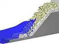При численном моделировании фильтрационное движение жидкости через полости материала дамб оценивается не с помощью классических уравнений для пористой структуры, а путём интегрирования уравнений RANS в рамках выбранной модели турбулентности.[19]