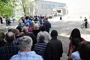 ![]() Митинг возле захваченного здания Донецкой ОГА | |||