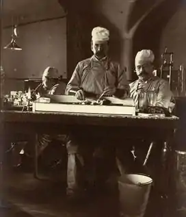 Работа с возбудителем чумы, приготовление разводок, заражение и вскрытие животных производились с особыми (для того времени) предосторожностями. Врачи и прислуга надевали брюки и халаты из тонкой прорезиненной материи и калоши, на голову холщовый колпак; по окончании работы халат и брюки вымачивались в карболовой кислоте, калоши мылись сулемой[4].