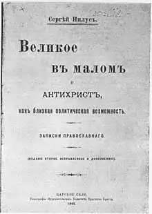 - Сергей Нилус. «Близ грядущий антихрист и царство диавола на земле». Гл. Х
