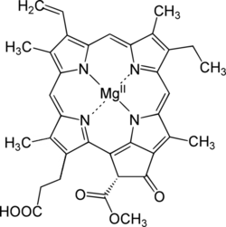 Протохлорофиллид,[1] или моновинил протохлорофиллид, это непосредственный предшественник хлорофилла a с отсутствующим фитольным хвостом.[2] В отличие от хлорофилла, протохлорофиллид имеет сильную флюоресценцию; мутанты, накапливающие его в своих тканях, светятся красным, если облучить их синим светом.[3] У цветковых растений, реакция превращения протохлорофиллида в хлорофилл является светозависимой, и такие растения становятся белыми (хлорозными) если выращивать их в темноте. В отличие от них голосеменные, водоросли, и фотосинтезирующие бактерии используют другой, не зависящий от света фермент, и вырастают зелёными даже в темноте.