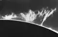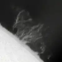 - 25 января 1991 года (вблизи максимума солнечного цикла) астрономы Udin W. и Verma V. K. зафиксировали максимальную скорость извержения протуберанцев — около 1280 км/с[4]. Но, возможно, речь идёт не о скорости вещества, а о скорости волны.