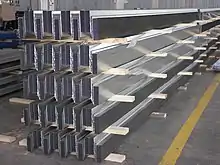 Стальной профилированный настил представляет из себя «гофрированные листовые профили, соединённые между собой по продольным краям и закреплённые на опорных конструкциях покрытия, расположенных поперёк гофров настила»[~ 1]. В качестве опорных конструкций покрытия служат балки и прогоны.