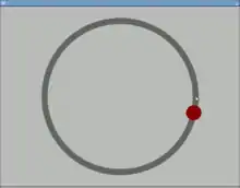 Устройство, используемое для изучения навыков зрительно-моторного слежения и координации рук и глаз координации рук и глаз, требующее от участника следить за движущимся объектом с помощью курсора[17] или использовать стилус для отслеживания цели на экране компьютера или поворотного стола.[18] В версии на экране компьютера участник следует по точке на круговой траектории, как показано ниже.[19]