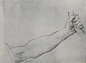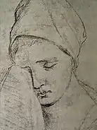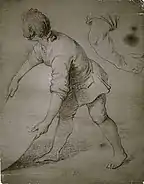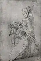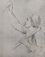 В собрании Государственной Третьяковской галереи находятся этюды «Юноша, подающий щит. Рука, согнутая в локте» (начало 1870-х, бумага серая грунтованная, итальянский карандаш, мел, 28,7 × 22,4 см, инв. 26513, альбом, лист 18, наклеен на лист альбома)[50] и «Голова плачущей женщины» (начало 1870-х, бумага голубая грунтованная, свинцовый карандаш, 14,7 × 12,5 см, инв. Р-1347)[50][51]. Первый из них ранее находился в петербургском собрании А. Р. Томилина, а затем в московском собрании А. Ф. Захарова, у которого был приобретён галереей в 1944 году[50]. Этот этюд, на котором изображён нагнувшийся молодой воин с щитом, «отличается большим мастерством исполнения, верностью пропорций и полной ясностью характера модели», он хорошо передаёт движение юноши, а также положение торса и головы[41]. Рисунок «Голова плачущей женщины», также известный под названием «Голова плачущей служанки», ранее находился в собрании А. Ф. Коростина[45], а затем у И. А. Коростиной, у которой был приобретён галереей в 1971 году и в том же году отреставрирован Е. Н. Дивовой[50]. Этот этюд, который считается «одним из самых ранних и самых выразительных образов русской женщины-крестьянки, созданных в XVIII веке»[52], является свидетельством вдумчивых поисков образа служанки[39].