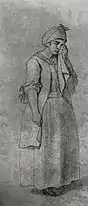 Образ плачущей служанки также принадлежит к центральной группе. Она является характерным персонажем картины, и её образ присутствует в подготовительных эскизах Лосенко, начиная с самых ранних[35]. Она плачет, утирая слёзы концом своей косынки; её костюм мало отличается от обычной одежды XVIII века[36]. По-видимому, художника привлекал этот «образ чувствительной женщины, трогательной своей добротой и искренностью переживаний», который рассматривался как «вполне реальный образ простого человека из народа»[35]. По словам филолога Эры Кузнецовой, «в её образе гораздо больше естественности, непосредственности и задушевности, чем в образе её госпожи»[37]. Лирический и трогательный образ служанки предвосхищает изображения крестьянок, созданные в начале XIX века Алексеем Венециановым[38]. При этом служанка как бы является составной частью образа Андромахи, тесно и неразрывно связанной с ним, неотделимой от него[39].