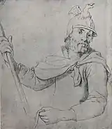 Три графических этюда хранятся в Музее Российской академии художеств в Санкт-Петербурге — «Мужчина с палкой» (бумага, карандаш, 29,1 × 22,2 см, инв. 1874), «Два воина» (бумага, карандаш, 39,5 × 28,0 см, инв. 1876) и «Воин в каске» (бумага, карандаш, 27,5 × 24,0 см, инв. 1875)[45]. В собрании Государственного музея изобразительных искусств имени А. С. Пушкина находится этюд «Ребёнок» (бумага серая грунтованная, карандаш, 21,1 × 13,5 см, инв. ГР-850, из коллекции И. С. Зильберштейна), на котором изображён полулежащий обнажённый ребёнок. Этот рисунок был использован художником для образа Астианакса[53].