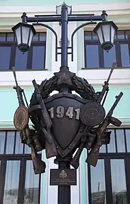 После открытия памятника разразился скандал. Входящая в памятник геральдическая композиция «1941» оказалась украшена не только классическими образцами советского оружия — пистолетом-пулемётом ППШ-41 и ручным пулемётом ДП-27, но и двумя немецкими винтовками Mauser 98k, по внешнему виду схожими с винтовкой Мосина. Уже 13 мая немецкие винтовки были спилены с памятника[5].