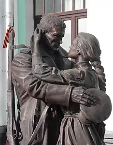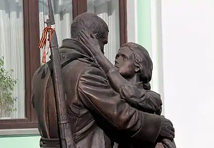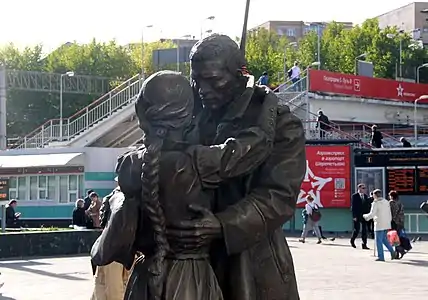 Памятник «Прощание славянки» установлен на территории Белорусского вокзала в Москве.
