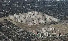После завершения строительства в 1955 году жилой комплекс состоял из 33 11-этажных жилых корпусов, расположившихся на площадке в 0,23 км² (57 акров). В комплексе было 2870 квартир, что делало его одним из самых больших в стране. Квартиры были небольшие, с маленькими кухнями. Лифты останавливались только на первом, четвёртом, седьмом и десятом этажах. Эти этажи были оборудованы большими коридорами, комнатами для стирки, общественными комнатами и мусоропроводами. Вентиляция была недостаточной, централизованного кондиционирования воздуха не было.