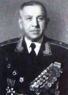 - четыре ордена Красного Знамени (21.02.1942 года за образцовое выполнение заданий Правительства по строительству укреплённых рубежей против немецких захватчиков[3], 3.11.1944, 18.05.1945, 20.06.1949)