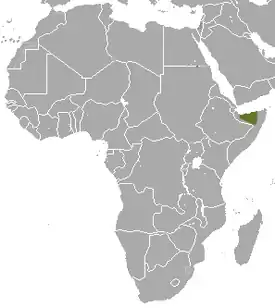 Встречается в северной части Африканского Рога. Ранее считалось, что вид эндемичен для Сомали, но наблюдения 2020 года также указывают на то, что они встречаются в Джибути и, возможно, в Эфиопии. Естественная среда обитания — субтропические или тропические кустарниковые степи и жаркие пустыни[4][5].