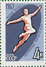 Марка СССР, 1963 г. Серия «III Спартакиада народов СССР»: Прыжки в длину.