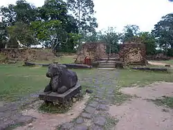Облицованный песчаником цоколь образует общую платформу для шести башен. С восточной стороны она разрезана тремя лестницы, боковые стены которых богато украшены с дварапаласами[неизвестный термин] и апсарами, охраняемые сидящими львами. Перед каждой лежат ваханы Нандины — ездовое священное животное Шивы.