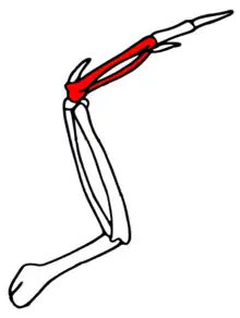 Данный элемент скелета крыла птиц принимает участие в образовании кистевого сустава. Малоподвижным суставом с ней соединены фаланга первого пальца и две крупные фаланги второго пальца. К пряжке и к фалангам второго пальца прикрепляются первостепенные маховые перья.