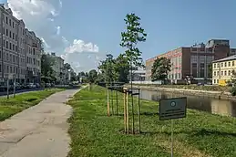 В 1962—1964 годах, в комплексе с перестройкой Банного моста, с верховой и низовой сторон были построены низкие стенки набережных с озеленённым откосом. В 1982—1984 годах по обоим берегам реки между Матисовым и Бердовым мостами сооружена низкая банкетная стенка на свайном основании с гранитным кордоном и лестничными спусками на озеленённом откосе. Существовавшие стенки набережной, примыкавшие к Банному мосту, были перестроены. На участке между Матисовым и Банным мостами вдоль откосов проложены прогулочные дорожки.