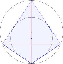 В описанном четырёхугольнике (то есть обладающем вписанной окружностью), четыре отрезка между центром вписанной окружности и точками касания четырёхугольника разбивают четырёхугольник на четыре прямоугольных дельтоида.