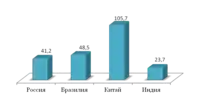 По итогам 2010 года, в Россию поступило $ 41,2 млрд[23], в Китай — $ 105,7 млрд, а в Бразилию — $ 48,5 млрд. Индия получила — $ 23,7 млрд. По данным UNCTAD за 2013 год крупнейшим реципиентом прямых инвестиций в мире были США, затем шёл Китай, а на 3-ем месте – Россия (которая единовременно поднялась на рекордно высокое место за счёт сделки между BP и Роснефтью)[24]. В 2015 году Россия занимала 19 место в списке стран по полученным ПИИ.