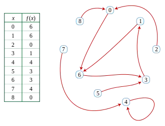 Поиск циклов, задача прослеживания путей в функциональном графе для нахождения в нём цикла, имеет приложения в криптографии и вычислительной теории чисел как часть ро-алгоритма Полларда для факторизации целых чисел и как метод нахождения конфликтов в криптографических хеш-функциях. В этих приложениях предполагается, что ƒ случайна. Флажоле и Одлыжко[17] изучали свойства функциональных графов, полученных из случайных отображений. В частности, из одного из вариантов парадокса дней рождения следует, что в случайном функциональном графе с n вершинами путь, начинающийся со случайно выбранной вершины, обычно зацикливается после O(√n) шагов. Конягин и др. осуществили анализ и вычислительные статистические исследования[18].