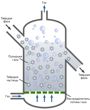 Как правило этот процесс происходит, когда жидкость (капельная жидкость или газ) движется вверх через зернистый материал. Данный процесс псевдоожижения основан на действии (противодействии) сил: аэродинамического лобового сопротивления и гравитационных сил.