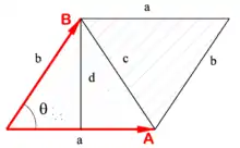 где — угол вращения (против часовой стрелки) от к . Если хотя бы один из векторов и нулевой, то полагают . Геометрически псевдоскалярное произведение векторов представляет собой ориентированную площадь параллелограмма, натянутого на эти вектора. С её помощью удобно работать с площадями многоугольников, выражать условия коллинеарности векторов и находить углы между ними.