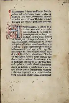 Самой известной и важной из этих работ была книга «Размышления о жизни Христа» (Meditationes de Vita Christi), написанная около 1300 года; её автор, возможно, как и Бонавентура, был францисканцем. Книга обращена к ордену клариссинок. До нашего времени дошло более 200 рукописей «Размышлений», включая 17 иллюминированных. С изобретением книгопечатания, «Размышления» стали регулярно печатать. Венецианское издание 1497 года — единственный известный итальянский блок-бух (Block book). Среди настоящих авторов «Размышлений» называли Лудольфа Саксонского (нем.) и Гуго де Бальма́ (фр.), однако авторство окончательно так и не было установлено.