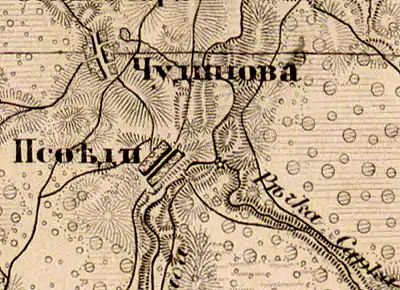 Деревня Псоедь на карте 1863 г.