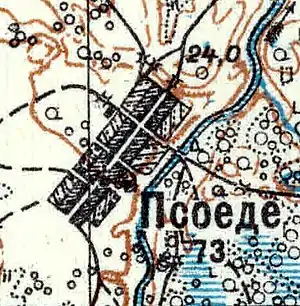 Согласно топографической карте 1926 года деревня называлась Псоеде и насчитывала 73 крестьянских двора.